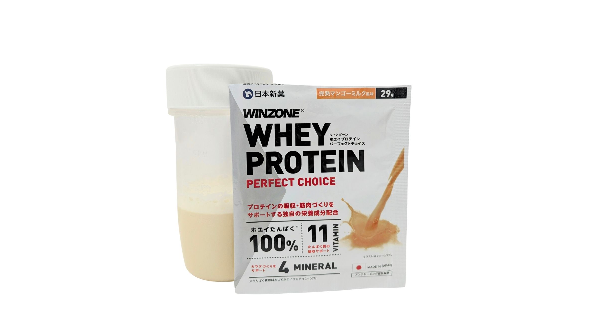WINZONEは製薬会社が製造している、アスリート向けのプロテインです。高いコスパの商品なので、運動をしていない人のたんぱく質補給にも向いていると思います。味はさっぱりしていて飲みやすいものが多く感じました。今回は完熟マンゴーミルク味をいただきました。こちらは飲みやすかったですが、少し果実感が足りない感じがしました。